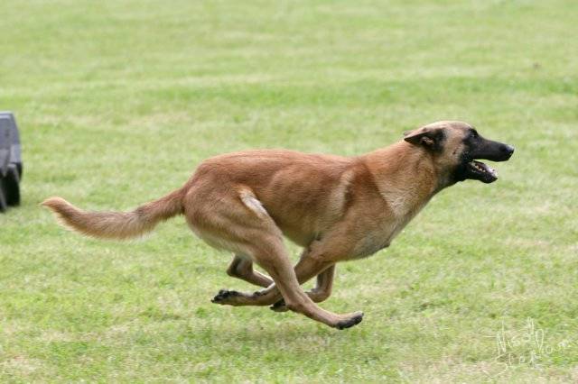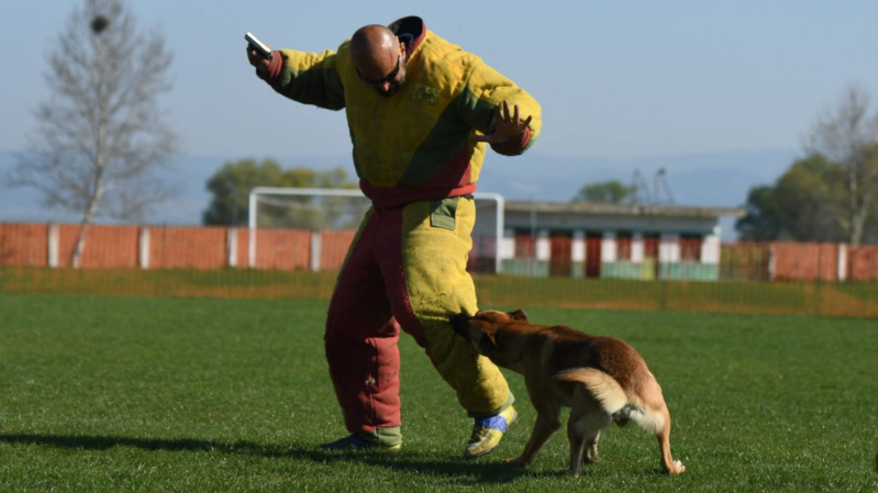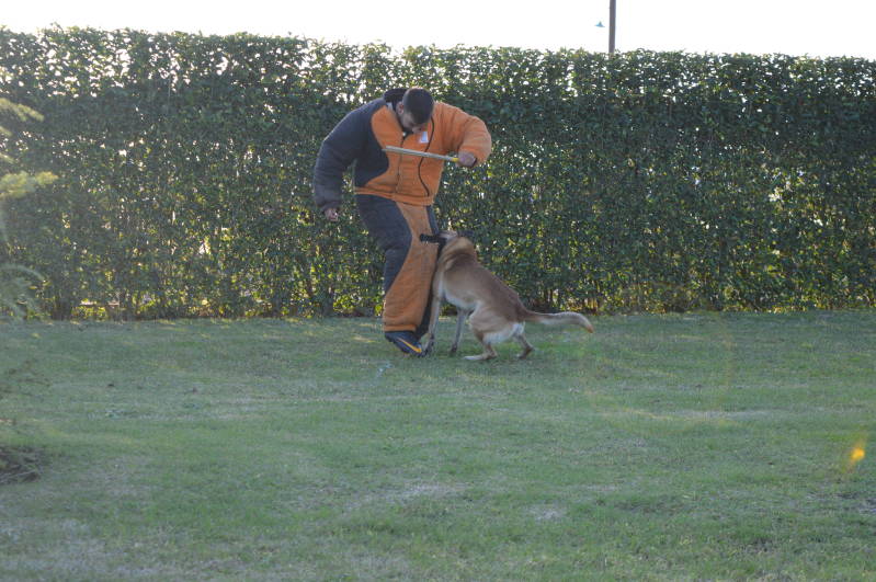 Ο σκύλος πρέπει να δαγκώσει τον ερεθιστή. Ο ερεθιστής πυροβολεί 2 φορές (9 mm), όταν δαγκώσει το σκυλί.