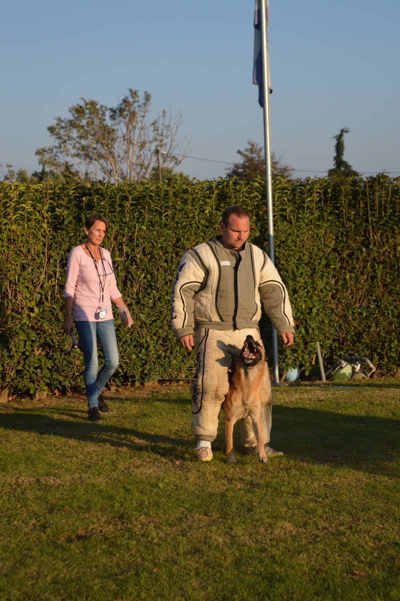 Ο σκύλος πρέπει να υπερασπιστεί τον χειριστή. Η κατάσταση είναι πάντα διαφορετική, ενίοτε με τη χρήση δύο ερεθιστών. Ο έλεγχος του σκύλου πρέπει να είναι κορυφαίος.
